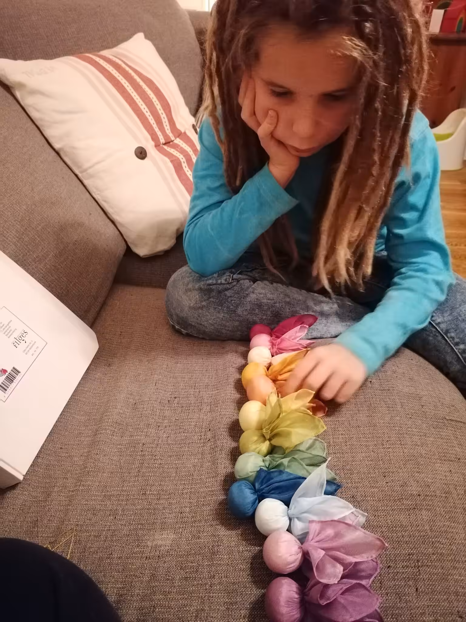 Hier unten erstmal ein Paar Eindrücke aus der Schwangerschaft – vom ersten Test, über noch mehr Tests 🙂 dann ist meine Sammlung von Schwangerschafts- und Geburtsbüchern für mich und auch für die Kids ins Wohnzimmerregal gewandert. Ich hab Anna ihre Kerze angezündet und ihr erzählt, dass sie große Schwester wird. Ganz viele Fotos von der wachsenden Kugel und ihr seht das Zimmer im Geburtshaus, wo ich alle 4,5 Wochen zur Vorsorge bei Inge war. Es war wieder eine reine Hebammenvorsorge und jedes Mal ein Aufatmen, wenn wir die Herztöne hören konnten. Für Zuhause hatte ich ein Hörrohr besorgt, aber das ist nicht wirklich zuverlässig. Im Garten haben wir Blüten und Kräuter gesammelt für die Lotusgeburt. Anfang Oktober haben wir den Geburtspool heraus geholt, aufgebaut, geputzt und geschaut, ob er ins Wohnzimmer passt. Und das Feenreigen-Mobile, das ich bei Mattis nicht geschafft habe, zu basteln, haben wir auch noch geschafft.
