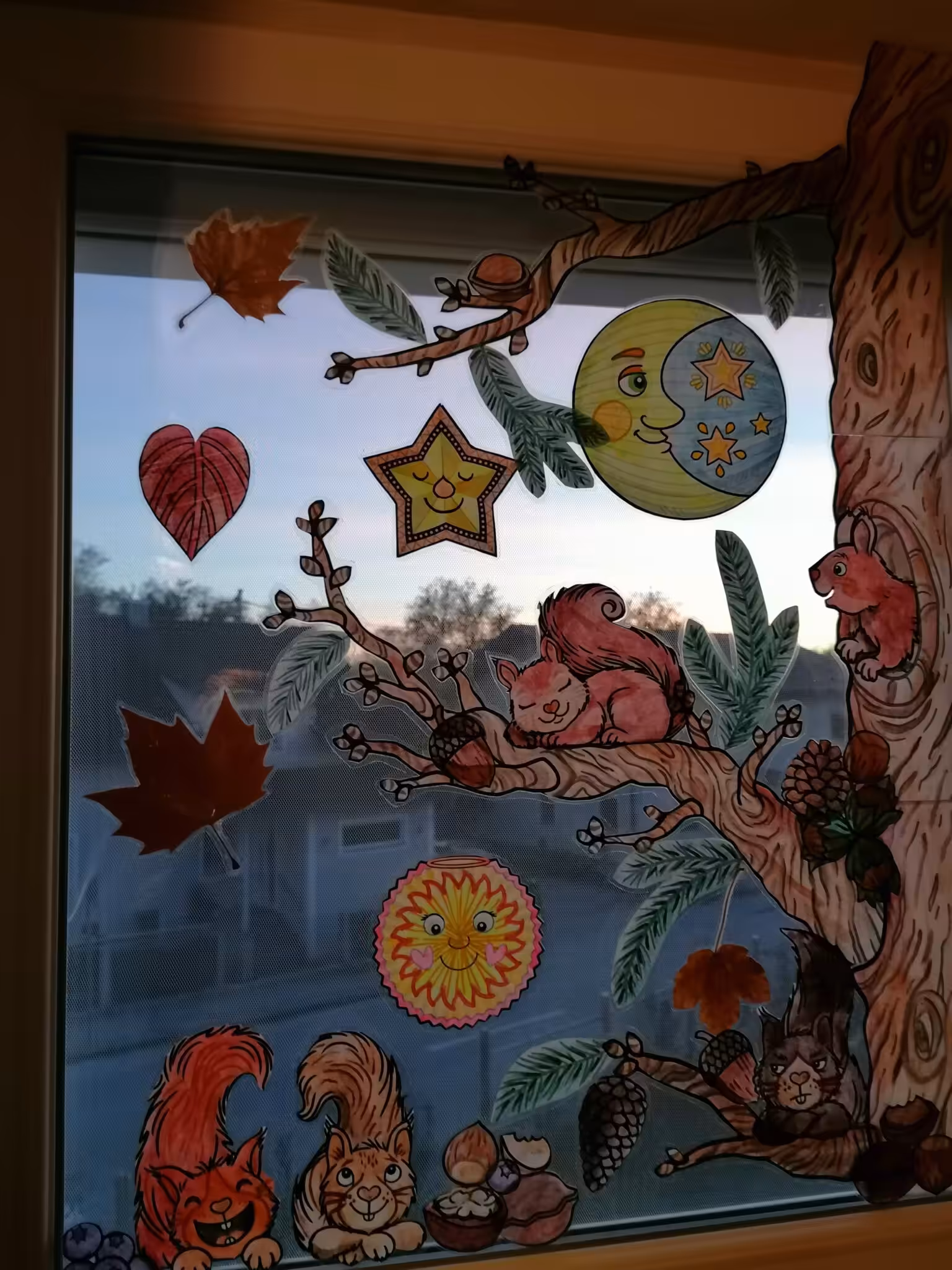 Alles ist ruhig, aber ich zeichne fleißig weiter und plage mich mit Magen-,Seiten- & Schulterschmerzen. Ich kann garnicht richtig sagen, was woher kommt. Wir haben lang geschlafen und dann habe ich mit Mattis seine erste St. Martinslaterne gebastelt und seine neuen Fensterbilder noch komplett ausgeschnitten, laminiert und aufgehängt. Beides wollte ich heute unbedingt noch schaffen. Zeitweise fühle ich mich ein bisschen komisch, so als würde das Baby nie kommen, alles ist so unreal gerade. Abends lege ich mich wieder ein bisschen hin und prompt kommen wieder die starken Schmerzen. Ich bin ein bisschen verzweifelt, wie das die nächsten Tage/Wochen noch weiter gehen soll so…