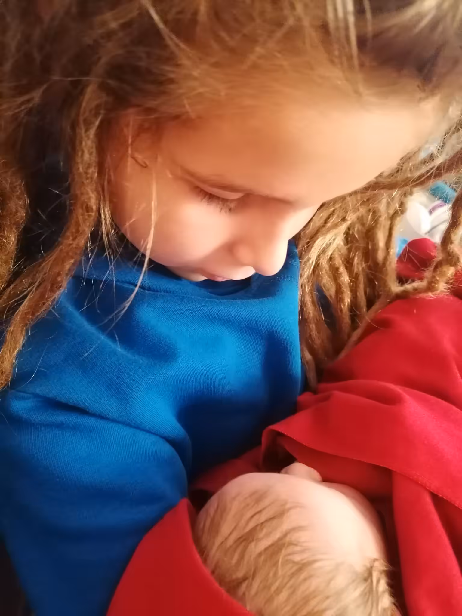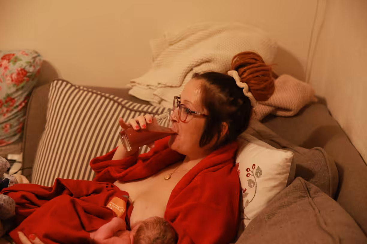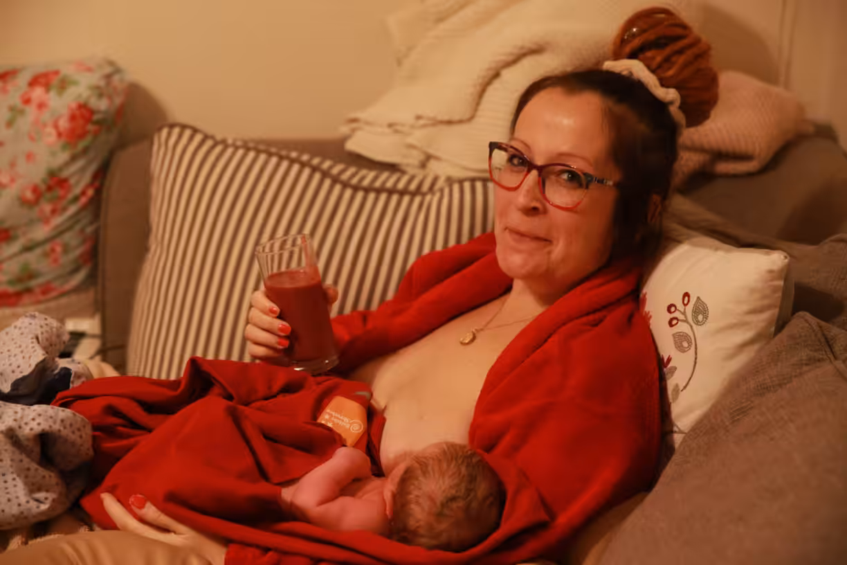 Nun sind wir gemütlich eingekuschelt auf der Couch und stillen direkt ganz ohne Problem. Ich freue mich so sehr, dass wir diese heilige Zeit nun genießen können, so wie es bei Mattis auch hätte sein sollen. Und Mattis stillt auch mit, Tandemstillen wollt ich ja unbedingt auch „schaffen“, bevor Mattis sich irgendwann abstillt. Und diesmal klappt auch endlich die Lotusgeburt, sprich die Plazenta bleibt dran. Inge hat sie erstmal in einige Mülltücher gepackt. Sie hat uns auch ihre Waage dagelassen, um Luca direkt noch zu wiegen. Am Abend kommt sie wieder und bereitet mir zusammen mit Chris in der Küche aus einem Teil der Planzenta einen Beeren-Plazenta-Smoothie vor, den sie auch direkt probiert. Stellt sich heraus, dass sie das immer macht – jetzt weiß ich, warum sie so frisch und fesch ist trotz ihres Alters 🙂 Wir lachen viel , ein schöner erster Abend.Den restlichen Smoothie gefrieren wir in Eiswürfelbehältern ein, um immer mal wieder einen zu lutschen. Emma ist auch ganz interessiert und probiert auch.